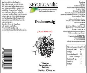 Organik üzüm sirkesi 500 ml - T.S.T.T 30.05.2023